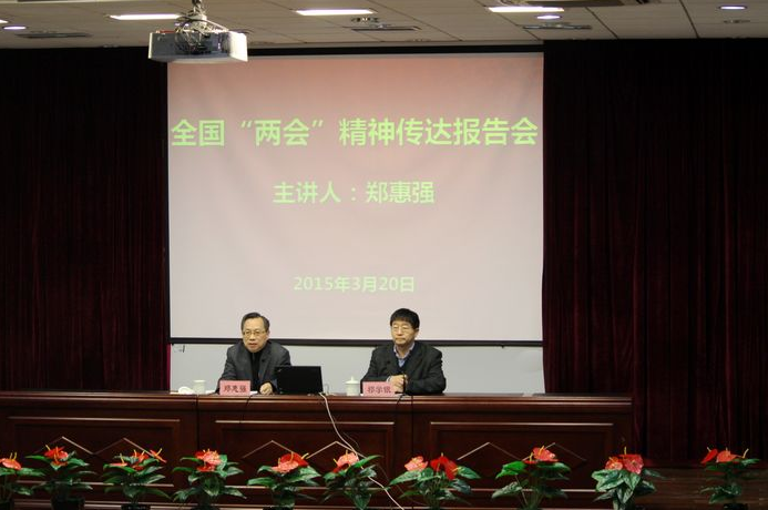 3月20日下午,全国政协常委、民盟中央副主席、民盟上海市委主委、上海市人大常委会副主任郑惠强教授应邀来校作专题报告,传达全国“两会”精神,受到了全院教职工和学生代表的欢迎。