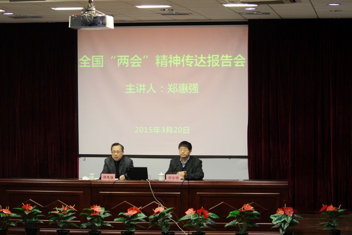 3月20日下午,全国政协常委、民盟中央副主席、民盟上海市委主委、上海市人大常委会副主任郑惠强教授应邀来校作专题报告,传达全国“两会”精神,受到了全院教职工和学生代表的欢迎。