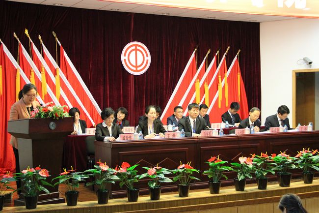 在雄壮激昂的国歌声中,会议正式拉开帷幕。大会由王滟同志主持,上海市教育工会常务副主席王向群致词,戚爱华同志代表学院第二届委员会作了题为《围绕中心、服务大局、为实现学院中长期改革发展规划纲要而努力奋斗》换届工作报告。傅巧玲代表经费审查委员会作了工会经费工作的报告。经大会民主投票选举,王滟等9位同志当选新一届工会委员,李娜等3位同志当选新一届经审委委员。