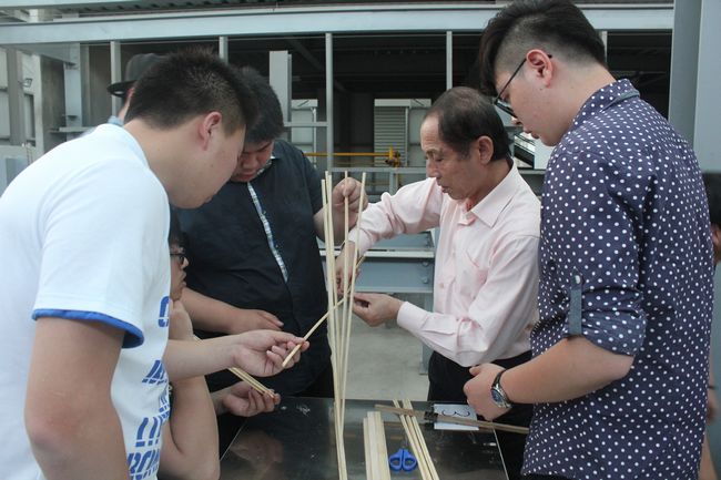 比赛开始前应惠清教授详细讲解了比赛规则,比赛最终要做一个悬挑的脚手架,最终根据方案设计、模型经济评分、模型外观和制作评分、模型加载评分四部分总成绩从高到低排序,选出一等奖一组,二等奖两组,三等奖三组等,比赛前半段还进行了一个小小的即兴比赛有七组同学做的符合要求,更有丰厚礼品奖励这些优秀的参赛小组同学,以此作为鼓励。在比赛现场将近两百名同学分为49组,其中两组来自建筑系,另外47组来自建工系13、14级爱好专业活动的同学。比赛过程展现了学生拼搏向上的精神面貌,更展现了他们勇于挑战的决心。