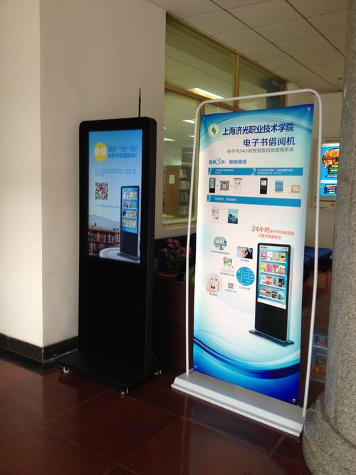 6月5日,我院图文信息中心一楼中庭的一台歌德电子借阅机让大家眼前一亮。喜欢电子移动阅读的读者只要用手机、平板电脑等对着歌德电子借阅机屏幕上的二维码扫一扫,就轻松借得了自己需要的电子图书,即可用手机等移动设备随时随时随地随心所欲地阅读。