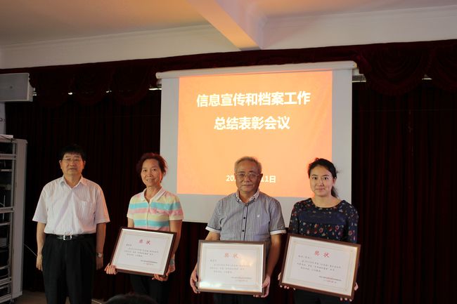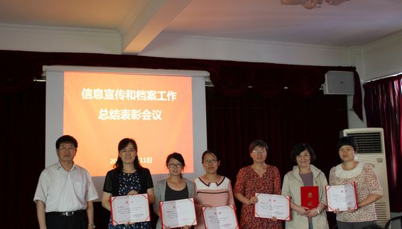 院办主任胡晓静主持大会并作档案工作全年总结、院办副主任刘丽作信息宣传工作总结。根据2013-2014年度全院各部门通讯员投稿和录用篇数的统计数据以及2014年度归档工作情况,本着公开、公平、公正的原则,学院最终评选出信息宣传工作优秀组织集体:院办(党办)、建筑系、经管系;优秀信息员:戚爱华、徐�、滕惠涛、潘慧茹、胡春宝、钱庆;优秀档案员:李银喜、冯燕、杨伟英、傅巧玲、王英、徐�。