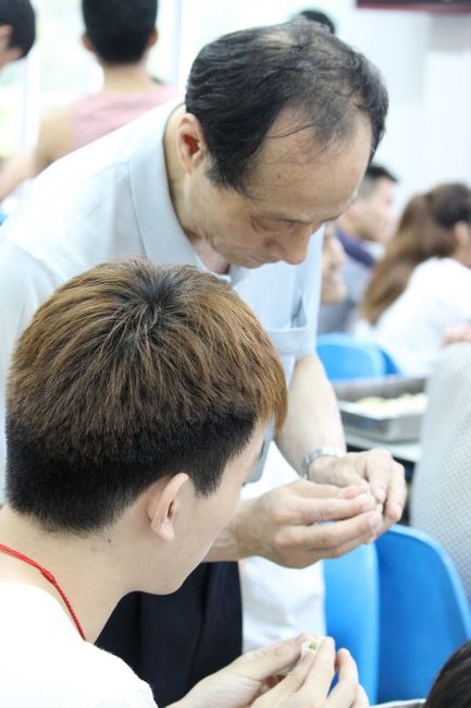 机关一支部的老师也为同学们带来了端午节的粽子和西瓜,将温暖送达每一位贫困生的手中,师生一起包出形式各样的“爱心”饺子,其乐融融。