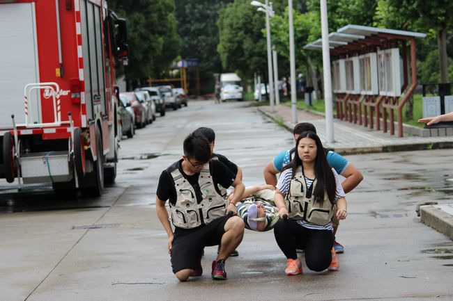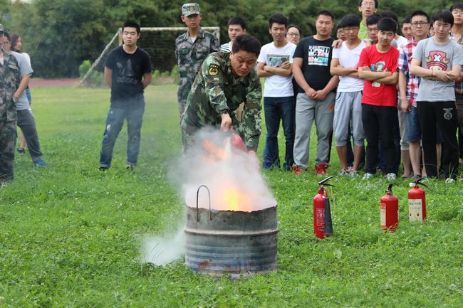 师生配合得井然有序。10:30时,太阳从阴沉的云间透出了些许光亮,给演习的成功加大了保险系数。10:50时,随着警报声,各参演人员在辅导员带领下,紧张、有序、忙而不乱地向操场集结。10分钟后,便悉数到达指定地点。20分钟后便完成预定目标,心肺复苏演习、灭火器的使用讲解、点火灭火的操练演习……正是所有环节的紧密衔接,所有人员的共同参与,才确保了本次演习的成功举行。