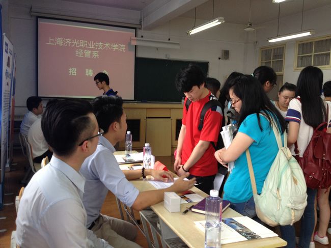 为全面落实经管系2013级学生的校外顶岗实习工作,经管系于7月10日下午1点在教学楼517教室举办了一次小型的企业专场见面会。此次见面会主要面向经管系还未落实岗位的同学,在对其数量及需求把握的基础上,邀约了兴亚报关、协通集团、金鼎名车汇、凯�财富等六家企业参加。经过前期辅导员和专业老师的宣传和动员,很多学生提前到到达现场,与用人单位进行洽谈。