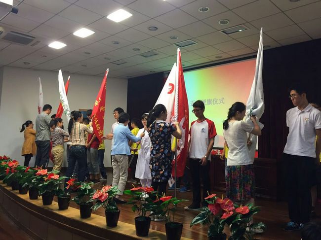 出征仪式在国歌声中开始,校团委书记潘慧茹老师做2015年暑期社会实践动员。随后,暑期社会实践学生代表吴溜溜同学代表全体14级同学发言,之后进行了授旗仪式,由学院党委副书记王滟、建工系党支部书记瞿丹英、护理学院党支部书记叶新、机电系党支部委员袁姗姗、经管系党总支副书记胡春宝、建筑系党总支副书记赵佳、校团委书记潘慧茹老师为暑期社会实践各队学生代表授旗。授旗仪式之后,全场进行了2015年暑期社会实践宣誓仪式,由校团委组织部部长李海祺同学领誓。