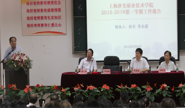 最后,李永盛院长作了2015-2016第一学期工作报告并讲话。他指出,过去的一个学期,学院在上海市教委、市民办高校党工委、董事会的领导下,在全校教职员工共同努力下,进一步贯彻“求实求新 人人成才”的办学理念,以改革为动力,创新为目标,以提高教育教学质量为中心,强化实践实训和内涵建设,大力推进教育教学改革,取得了较好的成绩。新学期,学院继续以立德树人为根本,以提高质量为核心,以专业建设为基础,以服务发展为宗旨,以促进就业为导向,以校企合作为纽带,以深化改革为动力,以扩大对外开放、提升国际交流合作为着力点,做好各项工作。