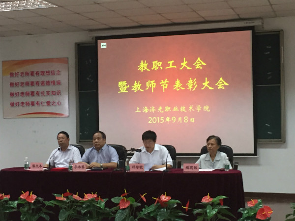 会上,潘立本副院长宣读了2014-2015学年我校获得市级荣誉成果的教师名单,他们分别是上海市级教学名师黄琪;上海市级精品课程何东伟;第二届上海市民办高校教师教学技能大赛二等奖刘夏虹;上海市教育质量提升计划项目应惠清、陈昌明、沈四林等三个团队;师生校外技能大赛杨丽、傅晨、沈玉石、岳华、庄慧、瞿丹英、凌定成等7个团队指导教师代表。