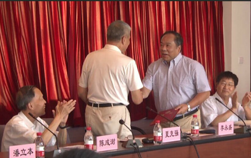 随后,夏克强董事长代表董事会为李永盛同志颁发院长聘书。