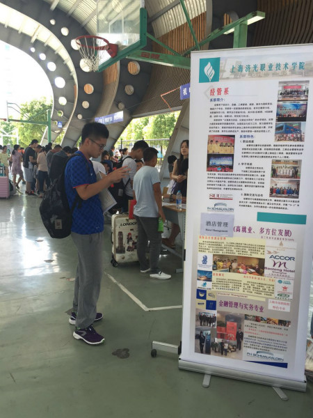 迎新现场,各系也紧密结合学生实际和专业特色,组织辅导员、班主任亲临现场,开展师生互动、沟通交流的专业导航与服务。报到现场还设置了“绿色通道”,确保家庭经济困难的学生能够顺利办理入学报到手续。为确保新生走进校园的第一时间就能够找到自己所在系及班级,方便快捷地完成报到,学校在地铁站以及校园内分设多块指示标牌,组织志愿服务人员,分流引导新生前往报到现场。