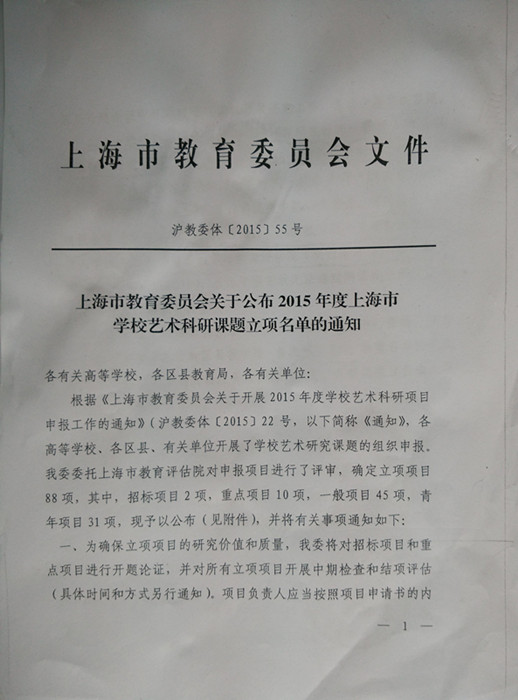 上海市教育委员会关于公布2015年度上海市学校艺术科研课题立项名单的通知