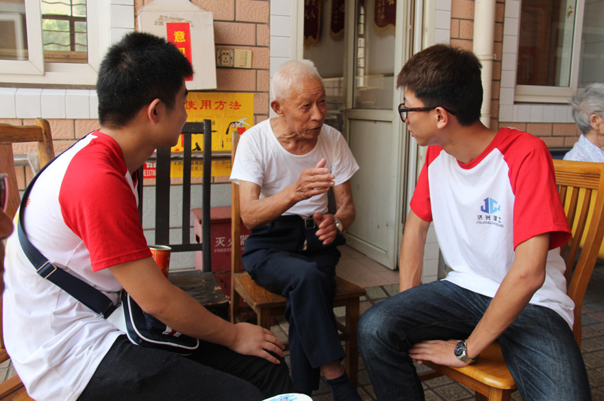 9月23日,济光学院建工系分团委学生会团学青年、入党积极分子和志愿者在分团委书记柴老师的带领下,来到了宝山区月浦镇怡康敬老院,举办了主题为“铭记历史,传承抗战精神,听老人讲过去的故事”的志愿创新活动。活动中,团学青年、入党积极分子和志愿者在工作人员的带领下进入老人房间分发牛奶和面包,帮助老人整理内务,剪手指甲,陪老人聊天,为老人表演节目,听老人讲抗日战争时期的故事,并且给予记录,作为学习资料进行保留。最后,团学青年们和院内为数不多的几位退休老军人进行了深刻交流,老军人将战场烽火连天、战士们英勇抗战、医护们争分夺秒救死扶伤的情境娓娓道来,生动的演说吸引了在场所有人,学生们听得如痴如醉,其他老人们有的微皱着眉头,有的不时点点头,有的甚至眼角泛出了晶莹的泪花。整个过程充满浓浓的爱国气息,同时也流露出当代大学生坚定信心,传承革命精神。在返回的路上,大家回顾起今天的历程,都纷纷表示将会铭记历史、缅怀先烈、珍爱和平、开创未来。