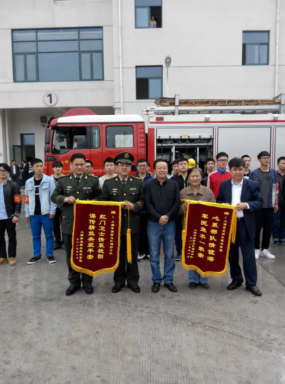 市教委后保处领导、我院领导与杨行总队合影 双方互赠锦旗