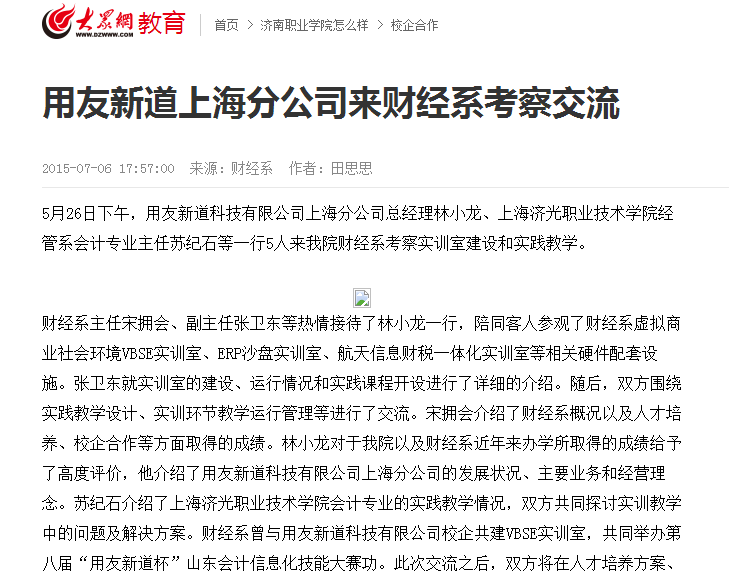 大众网《用友新道上海分公司来财经系考察交流》