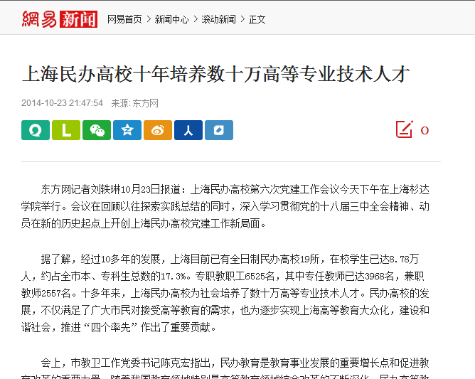 网易新闻《上海民办高校十年培养数十万高等专业技术人才》