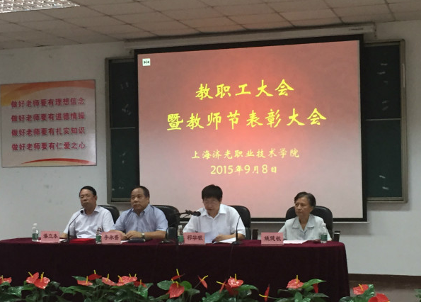 会上,潘立本副院长宣读了2014-2015学年我校获得市级荣誉成果的教师名单,他们分别是上海市级教学名师黄琪;上海市级精品课程何东伟;第二届上海市民办高校教师教学技能大赛二等奖刘夏虹;上海市教育质量提升计划项目应惠清、陈昌明、沈四林等三个团队;师生校外技能大赛杨丽、傅晨、沈玉石、岳华、庄慧、瞿丹英、凌定成等7个团队指导教师代表。
