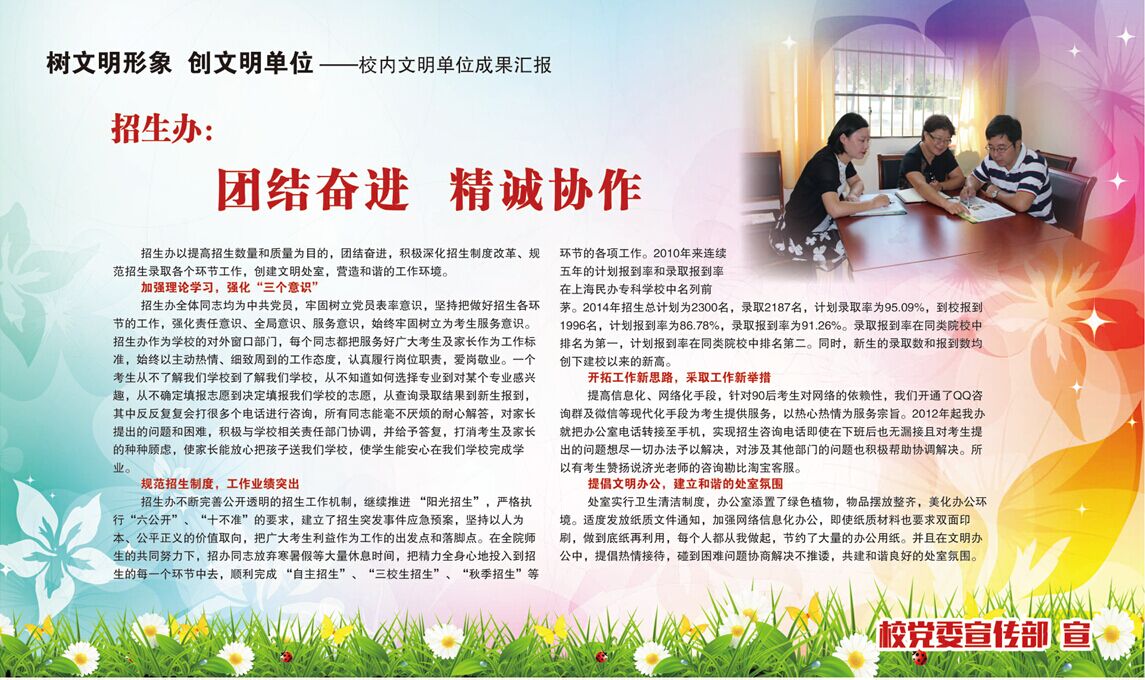 校内文明单位成果一:《招生办:团结奋进 精诚协作》