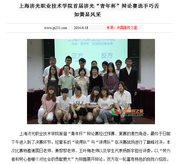 中国高校之窗《上海济光职业技术学院首届济光“青年杯”辩论赛选手巧舌如簧显风采》