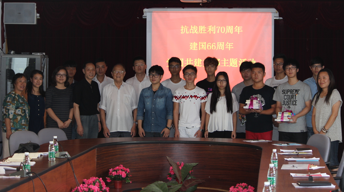 组织生活会上,机关一支部书记李仪君老师带领大家学习了习近平总书记的重要讲话。随后老师们谈了自己的学习体会,并对我们青年学生提出了希望。学院创办人曹善华老先生更和同学们回顾了那段历史,老先生还告诉同学们他家里有3人参加了抗日战争,胜利而归。并向同学们提出期望,送上祝福。