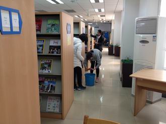 建筑系“雷锋”为校图书馆卫生清扫