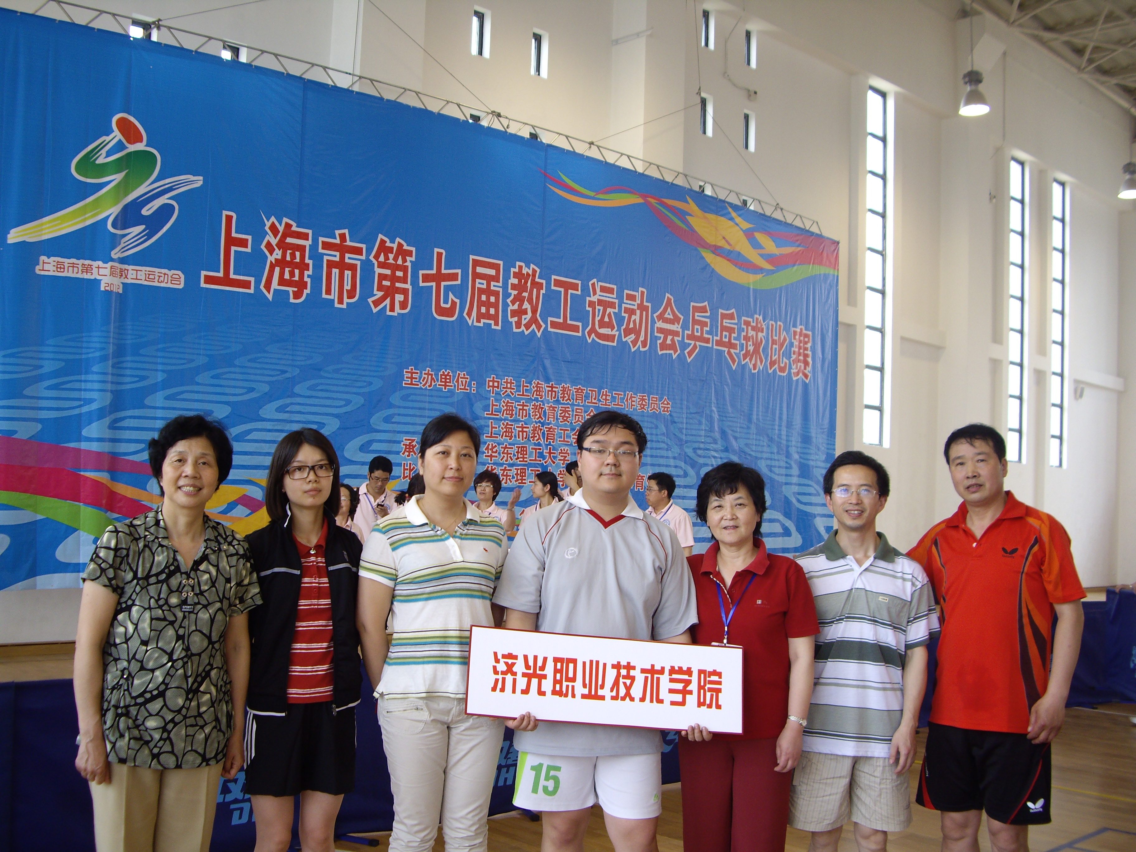 6、工会组队在上海大学参加2015年上海市东北片高校教工乒乓球比赛活动,这为东北片高校教职工构建了运动、合作、交流的平台,也丰富了教职工的业余生活,提高了教职工的身体素质, 也充分展示了我院开展群众性体育活动的成果。