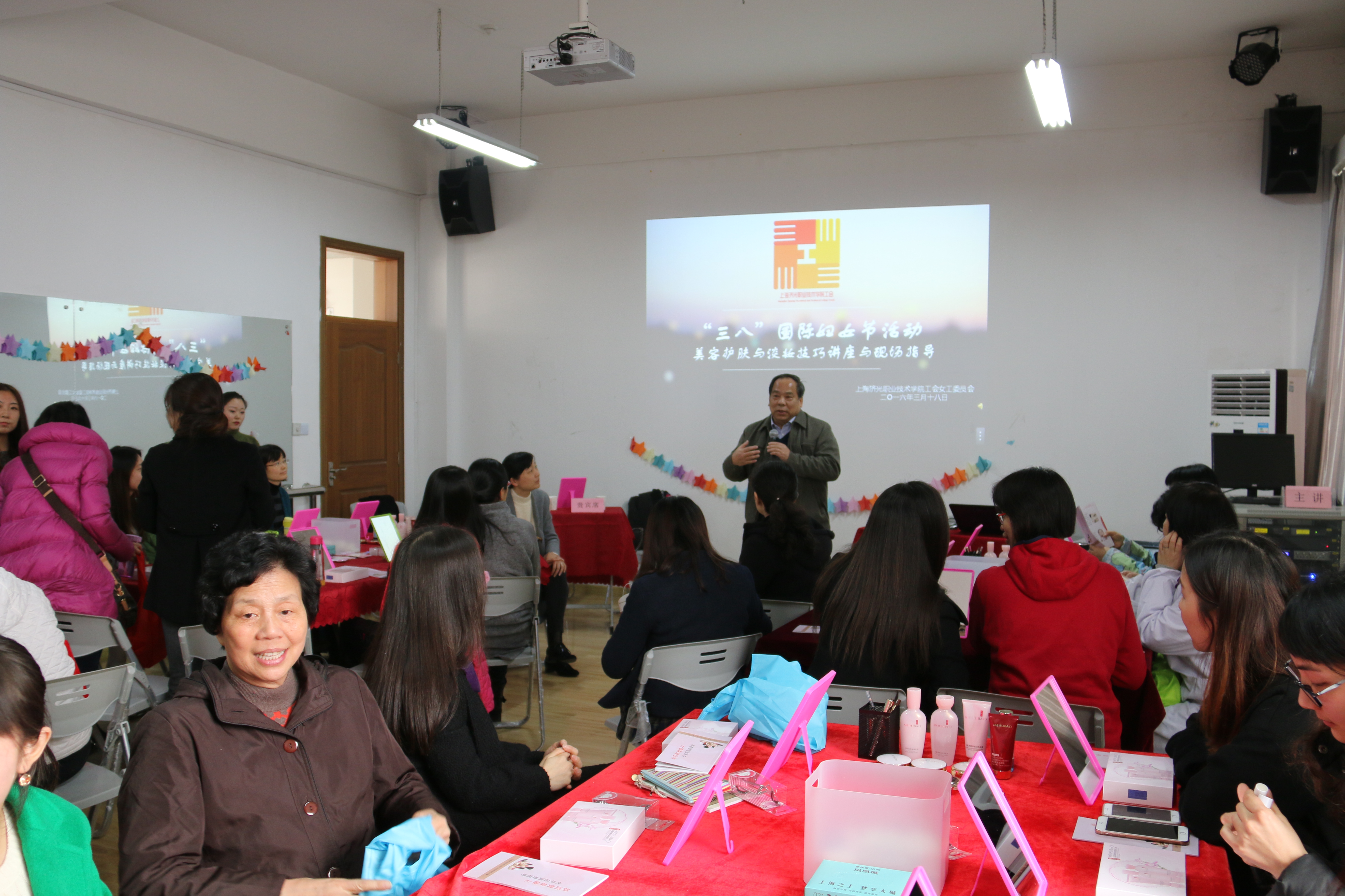 为了让广大女职工度过一个充实愉快、富有意义的节日,学院工会女工委组织“相约三八 共享快乐”主题活动于3月18日,在学生活动中心拉开序幕。邀请宝山区美容美发资生刘苏婵导师来我院做美容护肤与淡妆技巧的讲座与现场指导,刘苏婵导师给大家进行了清晰的讲解与熟练的操作演示,随后大家在刘苏婵导师指导下一起动手自己进行美容护肤与淡妆。女教职工参与热情高涨,体会属于自己的幸福味道,感受大家庭的浓浓情意。大家纷纷表示:尽情发挥创意和才能,一个个经过化妆后的脸蛋呈现在众人眼前时感觉更美了。通过活动,女教职工们学会了基本美容护肤与淡妆,分享到生活的快乐与甜蜜,增进了教职工间的交流,共同度过了一个美丽的节日。院长李永盛为活动开始作了精彩祝贺鼓励讲话,党委副书记、工会主席王滟全程参加活动,与女教职工们一起分享了这一份快乐,并为参加活动的100多位女职工和20多位女大学生送上节日的祝福和礼物。
