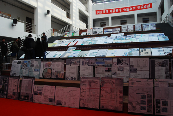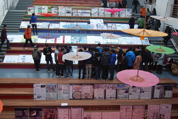 据了解,上学期的“构造设计实训周”教学实践对原有实训课程进行了改革,内容以我院教学楼、办公楼、图书馆的楼梯改造以及教学楼入口屋顶花园设计为主。这些教学实践课题以学生们身边熟悉的建筑为改造对象,激发了学生的积极性,从痛苦迷茫到积极投入设计,到最后排版出成果……他们积极热情地投入到改造设计工作中,在两周的时间里完成了包括效果图在内的全套的方案图纸,并打印成A1大版。实训周即将结束时,所有作品在大学生活动中心中庭里进行了公开互评,并定于本学期进行成果展示。
