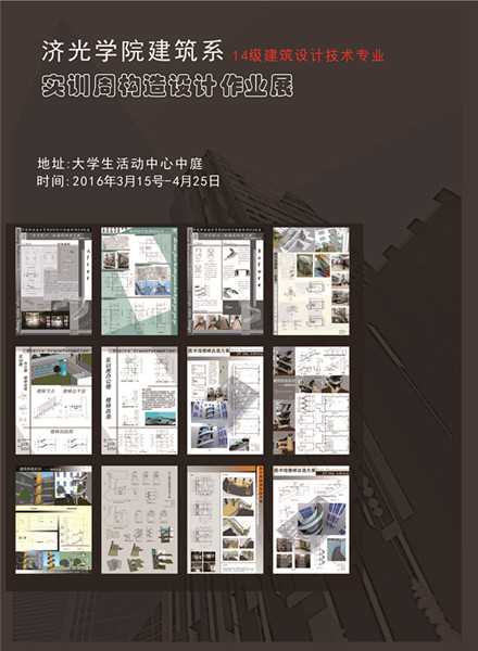 3月18日,建筑系综合实训周作业展在我院大学生活动中心中庭开展。本次作业展在上学期 “构造设计课实训周”的成果的基础上举办,作业质量较好,教学效果较明显,将延续一个多月,为建筑系历来作业展览时间最长的一次。