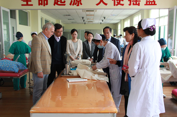会上,李永盛院长就我院基本情况,金庆跃院长就护理学院的学生情况、办学模式、教学设计、校内外实践教学、校内基地建设、“理实一体"教学以及师资情况向来宾做了介绍。随后,来访者参观了助产及妇婴护理实训中心和护理实训室,并观看了学生护理实训操作,德方友人对我校护理实训室给予了高度赞赏。