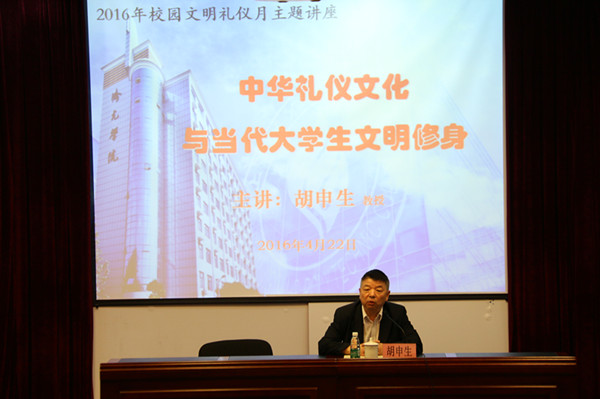 胡申生教授应邀来我院做《中华礼仪文化与现代大学生文明修身》主题讲座