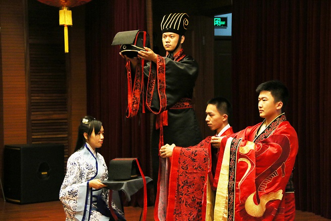 活动以孟母三迁微电影拉开序幕,接着汉式成人礼和神农尝百草等演绎使我们更近的感受到中华古文化的博大精深。由我院学工部组织,来自建工系、机电系的六名志愿者在活动中演绎了汉式成人礼,在学习、体验的同时,也为中华传统文化礼仪宣传贡献了青年人的力量。