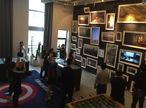 期间建筑系教师们参观了风语筑大厦2-6层展厅,了解了世界先进的数码展示系统和数码互动项目。同时,公司的接待区、创意区、休闲区、餐饮区、办公区等每个区域都有各自鲜明的主题,并融合了绘画、平面设计、视觉设计等时尚因素,给参观教师耳目一新的感觉。此次对风语筑数码展示公司的参观学习将对艺术类专业教师今后从事信息化教学产生积极的作用。