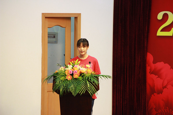 经管系庄秋园作为毕业生代表发言,她回忆了大学三年的美好时光,同时对老师、同学,和母校表达了感激之情,她从一个懵懂的花季少年成长为一位合格的大学毕业生,更报名参加了2016年的西部志愿者计划,今后她将仍然坚持做自己喜欢和适合的事情,早日实现梦想。