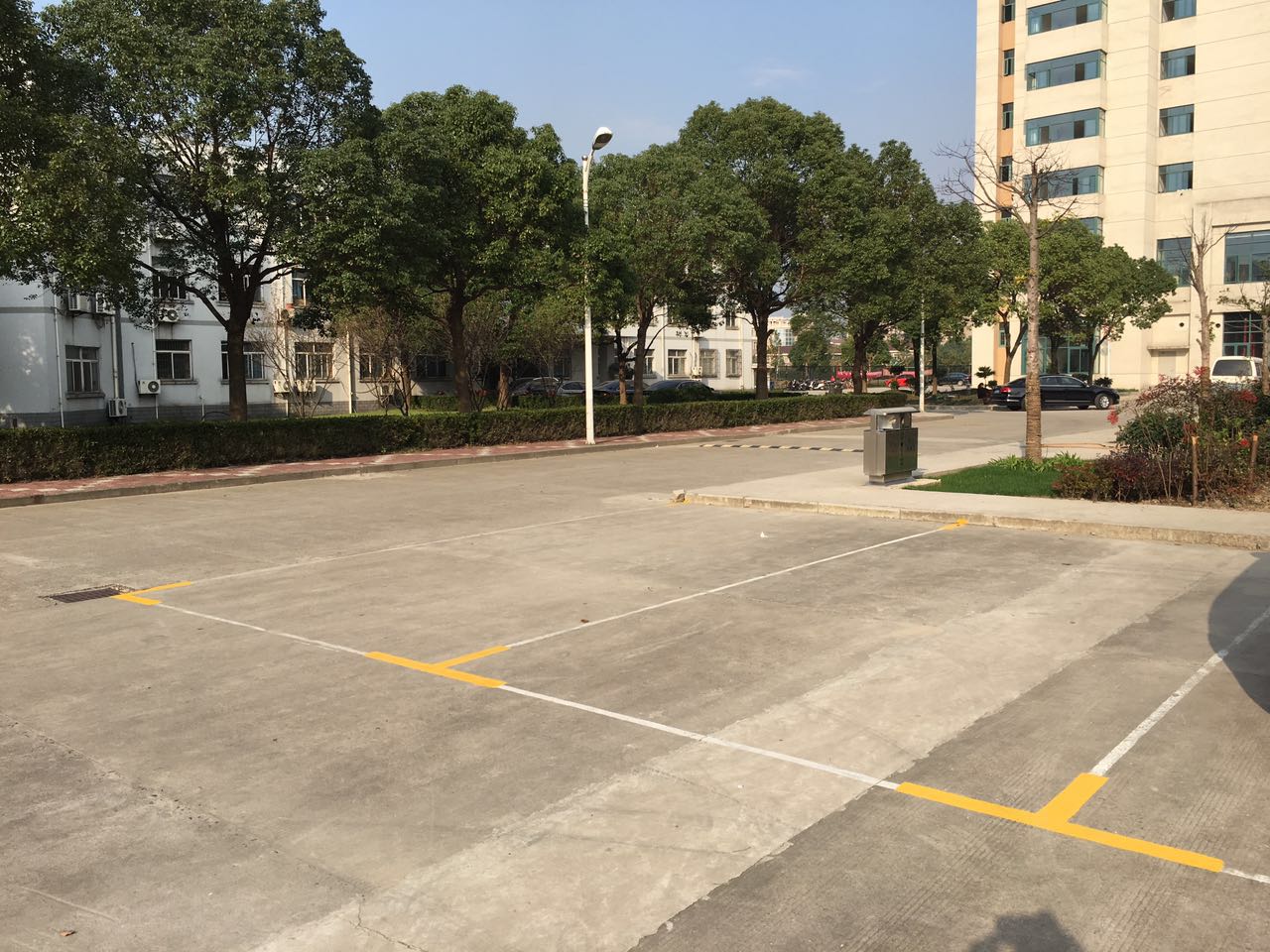 图为校内停车位标识清晰
