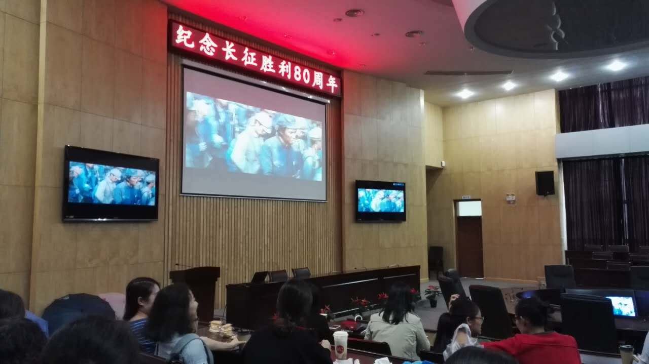 纪念红军长征胜利80周年,学院工会于10月26日中午在活动中心圆形会议室组织教职工看电影《长征》。为更好地为教职工服务,利用教职工看电影休息的机会,为他们送上一杯杯热咖啡和一点点心,使工会工作进一步贴近教职工。教职工在看电影《长征》的过程中,也深深感受到,中国共产党挽救民族危难的历史担当和引领民族复兴的中流砥柱作用,进一步凝聚起全党全军全国各族人民不忘初心、继续前进的信念与力量。