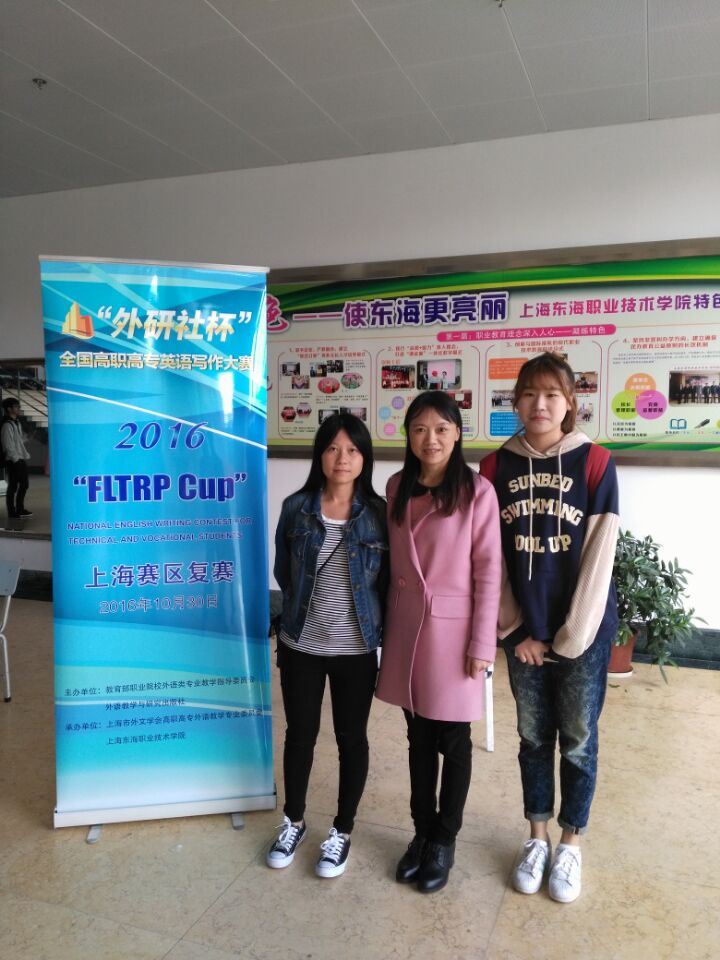 10月30号,第七届“外研社杯”全国高职高专英语写作大赛上海市复赛在上海东海职业技术学院隆重举行。15级涉外护理1班张笑笑、会计专业5班戴诗佳在基础部教师王德红、杨丹凤经过几个月的辅导,经过激烈角逐,分别荣获公共英语组二等奖和三等奖。