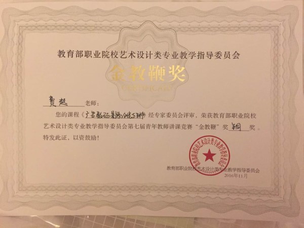 11月6日,在广东举办的教育部职业院校艺术设计类专业教学指导委员会第七届青年教师讲课竞赛中,我院建筑系费越老师荣获“金教鞭”奖铜奖。