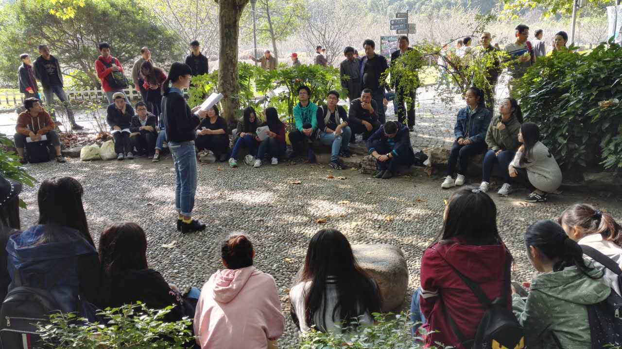 11月5日,周六,天气晴朗。经过此前的精心策划,悦书明礼社30余人在指导老师谢老师的带领下来到了上海人民公园举办此次活动。此次活动分为两个部分:经典诵读和寓教于乐,分别于上下午进行。诵读的内容则分为四大部分:郁勇勇同学带来了《道德经》的相对论,陈昊同学诵读了庄子的《齐物论》,李佳佳同学带来的是《资治通鉴》中的“法者天下之公器,惟善持法者,亲疏如一,无所不行,则人莫敢有所恃而犯之。”还有陈智远同学诵读的元曲《懒人窝》。他们在诵读完原文后都对其译文和推荐理由进行了解读,每一部分诵读完毕后,大家便联系实际、结合自身踊跃发言,分享了各自的感想与看法。最激烈的场面当属石春阳同学和刘珺辰同学关于庄周梦蝶中虚实的讨论以及大家对资治通鉴中关于法律引起的讨论,大有辩论的姿态,许多同学的精彩发言和自己对问题的独特见解吸引了不少过往游客驻足聆听与参与,时而引起阵阵掌声。每一段讨论之后,谢老师都会进行点评并总结。时间过得非常快,大家讨论的激情丝毫不减,越发广博而深入,一直持续到吃中午饭,才肯结束。
