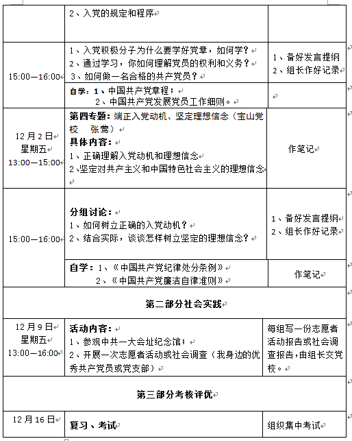 (四)积极参加党校组织的各项活动,以严肃认真的态度,写好个人书面小结,并按时上交。