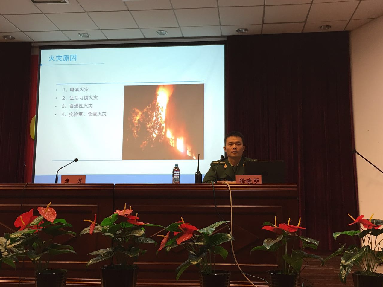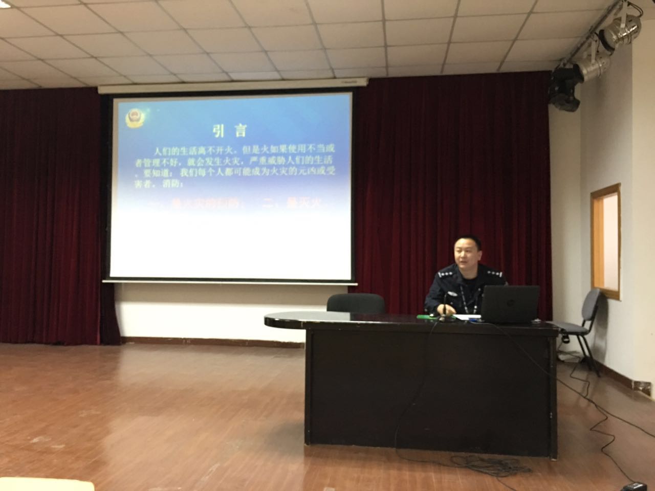 图为消防队徐队长作消防讲座