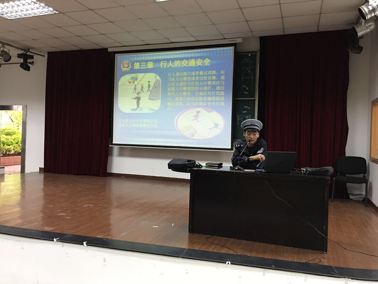 图为葛警官在作交通安全讲座