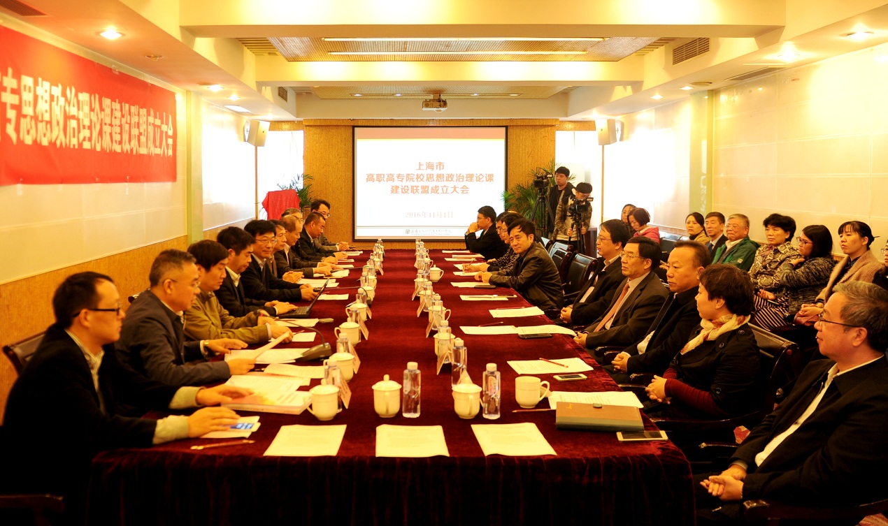 2016年11月1日,上海市高职高专院校思想政治理论课建设联盟(以下简称“上海联盟”)成立大会在上海出版印刷高等专科学校召开。上海市教卫党委巡视员李瑞阳、教育部高等院校思想政治理论课教学指导委员会“高职高专”分教指委主任委员徐维凡、教指委副主任委员陈旭东、程美东、上海市学生德育发展中心主任沙军及上海市各高职院校领导、思政部主任、教师代表出席了会议,我校思政部主任丁晓红、教师代表陈海青参加了会议。