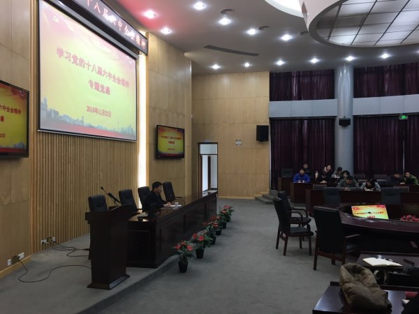 11月23日下午,学习党的十八届六中全会精神专题党课在圆形会议室举行。党委书记祁学银就深入学习贯彻党的十八届六中全会精神,进一步推进“两学一做”学习教育,以《认真学习十八届六中全会精神,准确把握全面从严治党的新内涵新要求》为题讲党课。学院领导班子成员、各基层党支部书记、党委部门负责人、思政课教师以及辅导员参加党课学习。