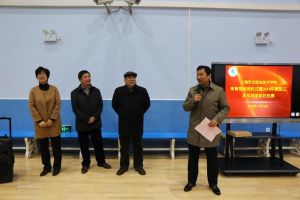 启用仪式上,李校长肯定了体育馆改造工作的完成,并对学院师生提出加强运动、增强体质的希望。远东建筑设计院徐仁林院长表示今后将对我院在建设和改造工程上给予大力支持和配合,宝山区杨行镇教委许黎芳主任也表达了对学院建设发展的期望。