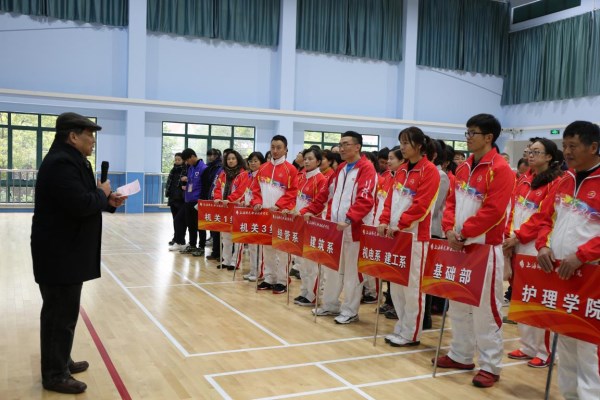 仪式结束后,由院工会组织、基础部部门工会承办的教工乒乓球团体对抗赛在体育馆举行,李永盛院长和祁学银书记开球。经过激烈的对决,决出了前四名和四名优胜奖。