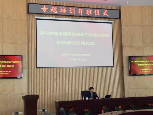 为贯彻落实习总书记在全国高校思想政治工作会议上的讲话精神,提升辅导员政治思想水平,提高辅导员职业能力素质,学院2017辅导员专题培训班开班仪式于4月12日在学院圆形会议室隆重开幕。全体辅导员以及学工部全体工作人员40多人出席了开班仪式。