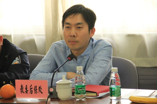 后保处处长凌龙在会上对学院安全生产、综合治理和平安校园建设工作作了汇报,强调了安全工作的重要性,并将消防安全作为今年学院安全工作的重点。