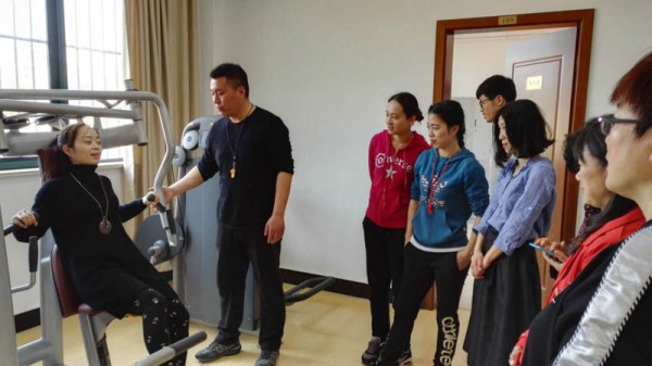 4月14日下午,体育教师在体育馆中进行了体育讲课。四位体育教师带领两部老师体验健身房的器材,并分别讲解、演示了啦啦操、健美操和羽毛球的动作要领。体育教师的讲解和体育馆的配套硬件得到了两部教师的一致肯定。