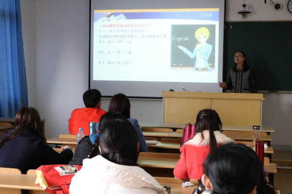 3月31日中午,理论课教师们在424教室先行比武。活动由丁晓红主任主持,两部教师全体参与,轮流上台讲授教学中的某一片段。教师们都从自身教学情况出发,挑选较为拿手的章节上台展示,讲台成为了两部教师展示教学水平和自我风采的大舞台。有的英语教师通过词根、词缀记忆法增加学生词汇量、促使学生记牢单词;有的通过中英语言对比教授学生翻译技巧;有的思政教师凭借丰富的历史资料对祖国统一理论侃侃而谈……台下的教师们也认真观摩,积极与台上的教师互动。