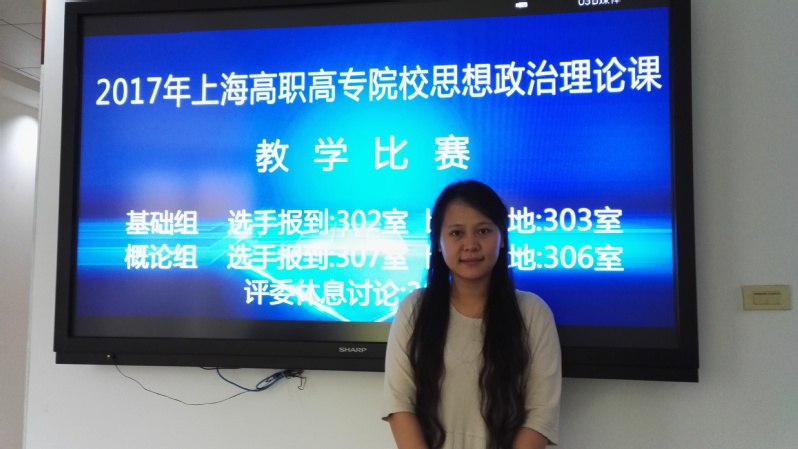 9月30日,2017年上海高职高专思想政治理论课教学比赛在上海电子信息职业技术学院徐汇校区举行,本次赛事由上海高校思想政治理论课教指委高职高专分委和搞好高职高专思想政治理论课联盟联合主办,共有来自全市高职高专院校的25名选手参加了《基础》课和《概论》课的角逐,我校张静老师参加了《概论》课关于生态文明建设一节的比赛,比赛中沉着稳定,发挥出色,在14名选手中脱颖而出,喜获三等奖。本课程共设一等奖一名,二等奖一名,三等奖二名。